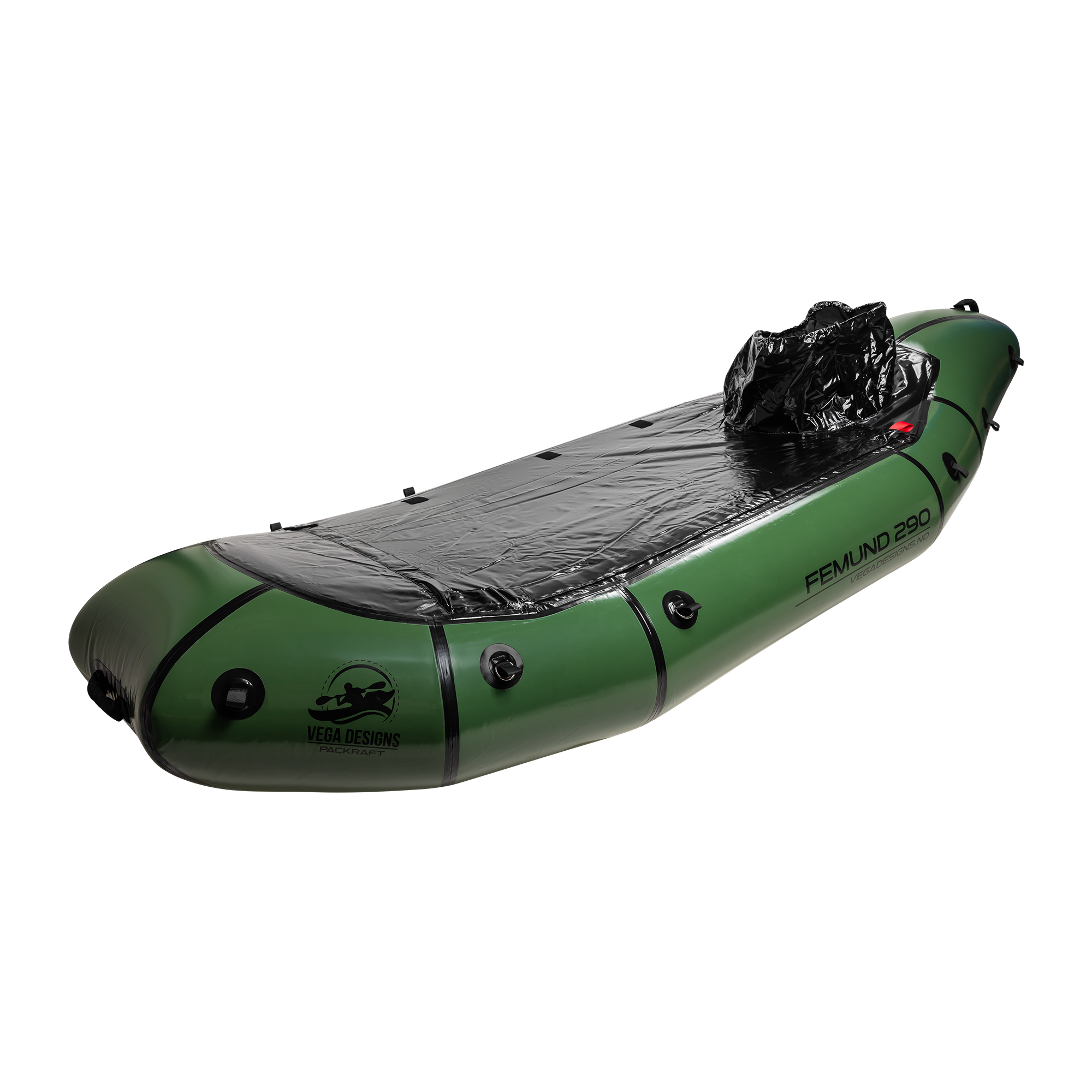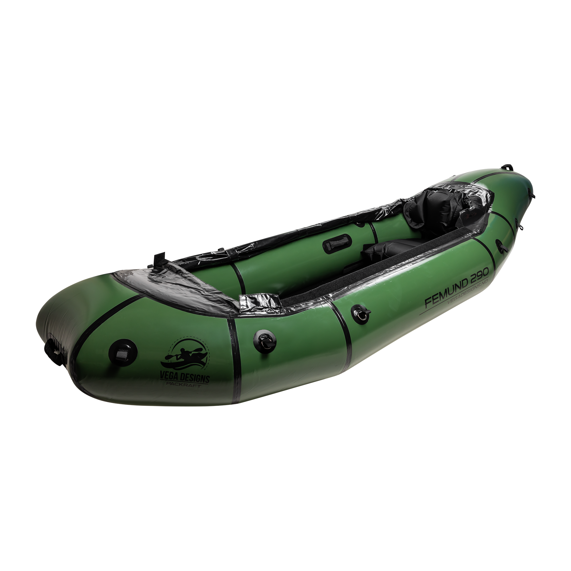 Vega Designs Femund 290 er en stor og solid packraft for deg som vil ha ekstra plass, høy lastekapasitet og en trygg båt til lengre turer med mye utstyr. Dette er en robust modell med god retningsstabilitet, høy komfort og padleegenskaper som gjør den godt egnet til aktivt friluftsliv. Packraftens form, kombinert med styrefinnen, gir god kursstabilitet og et godt fartspotensial. Femund 290 er først og fremst utviklet for padling på flatt vann, men den oppfører seg også svært godt i rolige elver, på fjellvann og i norsk skjærgård.